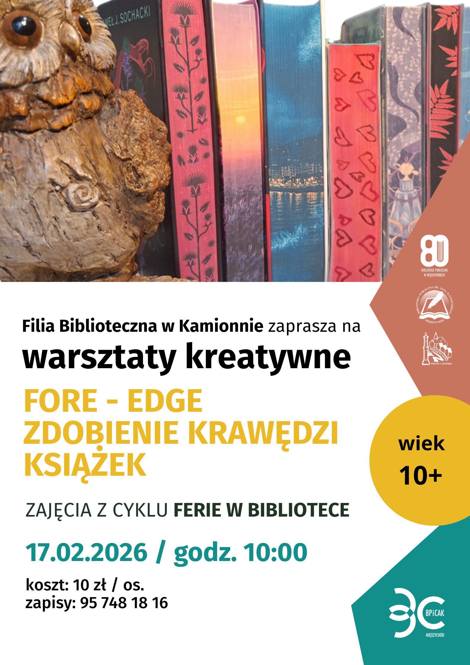 To propozycja dla tych, którzy lubią książki i sztukę w nieco innej odsłonie. Uczestnicy poznają technikę zdobienia krawędzi książek, dzięki której zwykły egzemplarz może stać się prawdziwym dziełem artystycznym. Zajęcia rozwijają precyzję, wyobraźnię oraz pokazują, że książka może być także formą sztuki.
